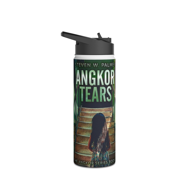 Quench your thirst in style with this 18oz stainless steel water bottle featuring a double-wall stainless steel build that keeps your drinks frosty for 24h and soothingly hot for 12h. This BPA-free, steel water bottle comes with a twist-on lid for easy sipping, making it excellent for daily use at work, at college, in the car, and beyond. The cover art in this water bottle is from Steven W. Palmer’s book, Angkor Tears.