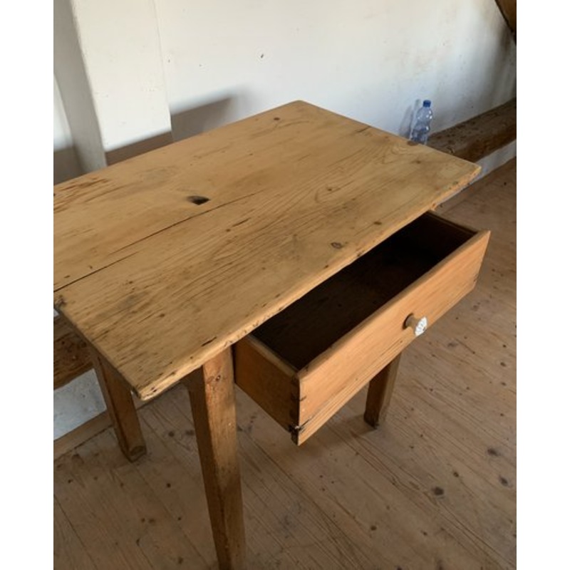 Very beautiful, natural side table in Art Nouveau/peasant style. Drawer with porcelain button. Design Period 1890 to 1919 Production Period Unknown Style Art Nouveau Detailed Condition Good This vintage/antique item may have some wear such as scratches and