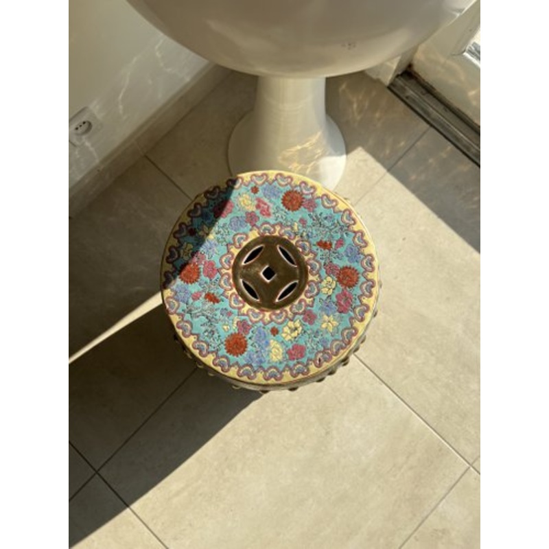 This beautiful ceramic garden stool is an authentic piece inspired by traditional Chinese art. Its finely hand-painted decor illustrates a scene of imperial life, enhanced by golden touches and relief details which add character to the whole.