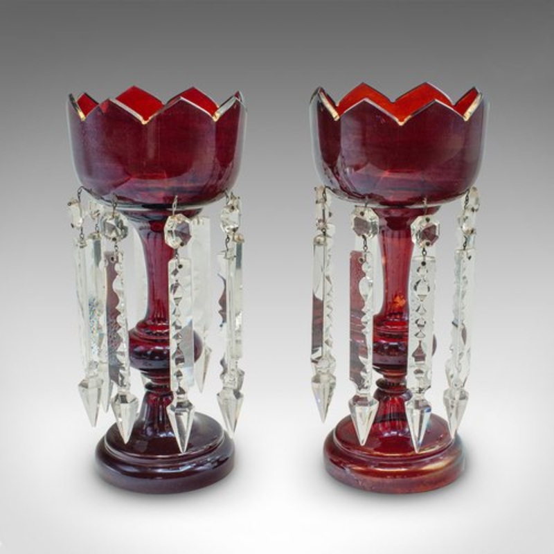Antique English Cranberry Lustres in Glass, 1900, Set of 2 for sale at Pamono
