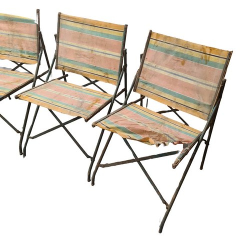 Antique French Camping Folding Chairs, Early 1900s, Set of 4 for sale at Pamono