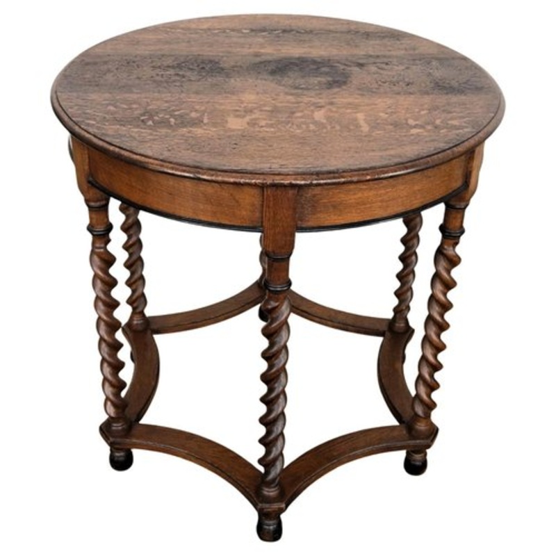Beautiful antique Italian solid walnut side table, features round top with beveled edges over six beautifully bobbin turned legs, connected to one another with optogonal star shaped central stretcher. This Italian walnut side table or coffee table with the great dark wooden color will look wonderful in a corner, next to a sofa or between a pair of armchairs.