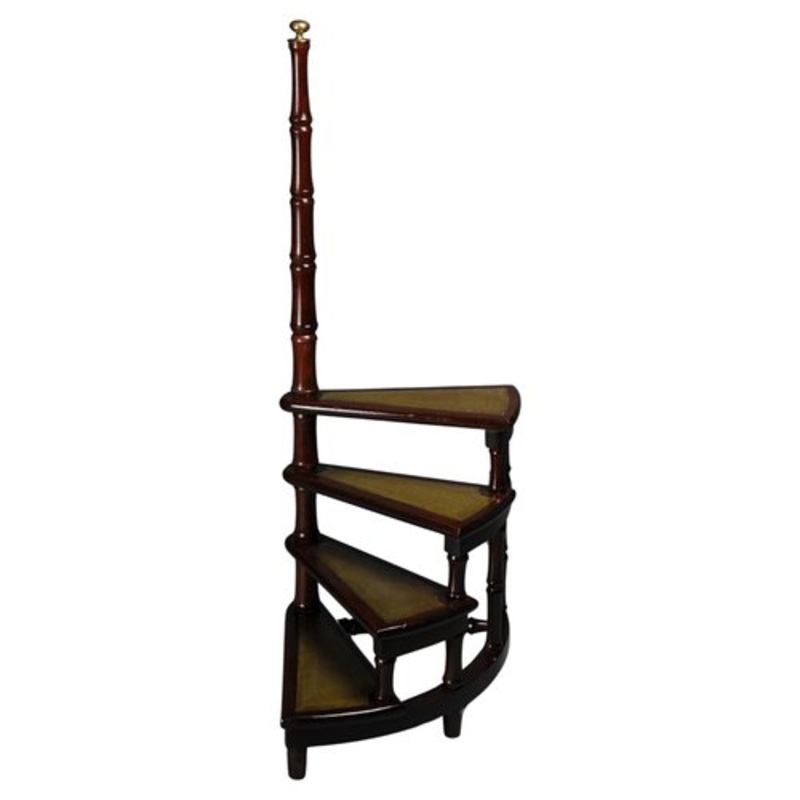 Antique Mahogany Library Ladder with Green Leather for sale at Pamono