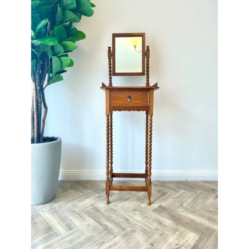 This is a great quality solid wood antique shaving stand. Comprising of a single drawer and adjustable mirror. This could be used as a compact dressing table, vanity unit, jewellery storage or unique plant stand/ hallway table.