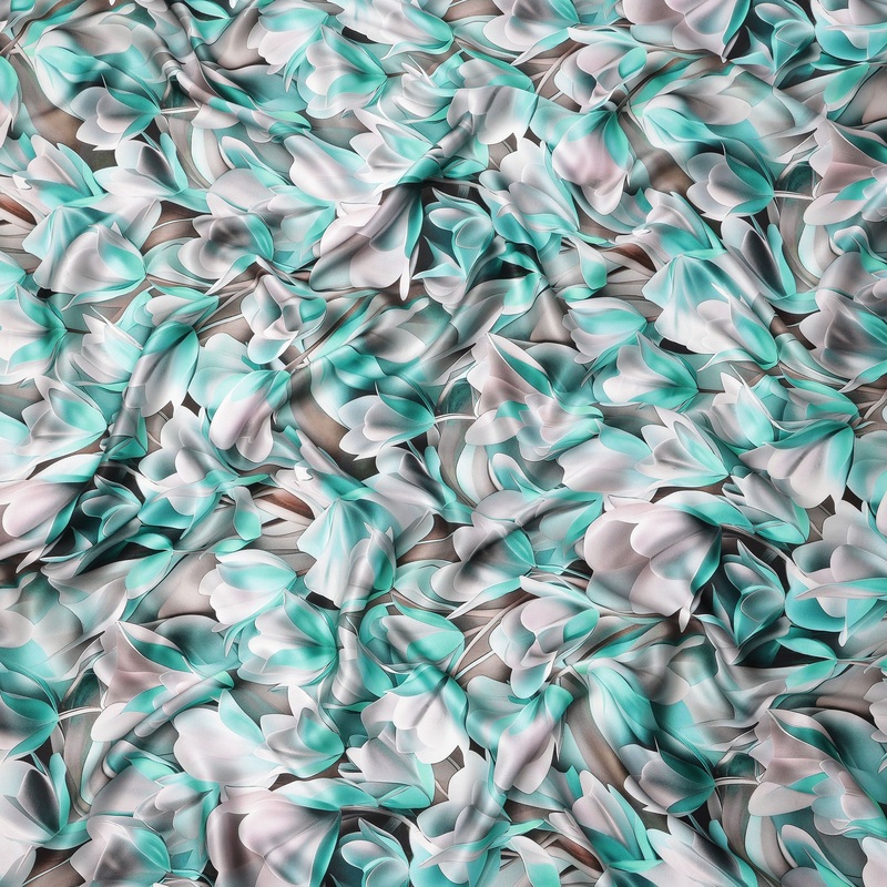 Add a refreshing charm to your wardrobe with this aqua and white abstract floral print on premium pure Italian silk satin fabric, a luxurious blend of contemporary design and timeless elegance. The fabric features soft aqua tones paired with delicate white