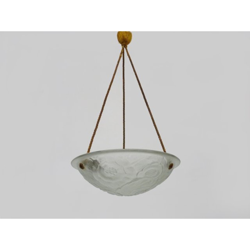 Old chandelier, Art Deco 1 light basin pendant light, in glass paste, floral decoration.