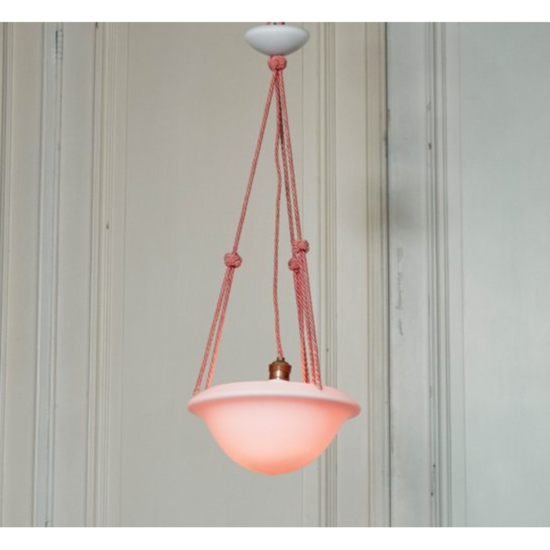 Beautiful 1930s French Art Deco pink frosted glass pendant.