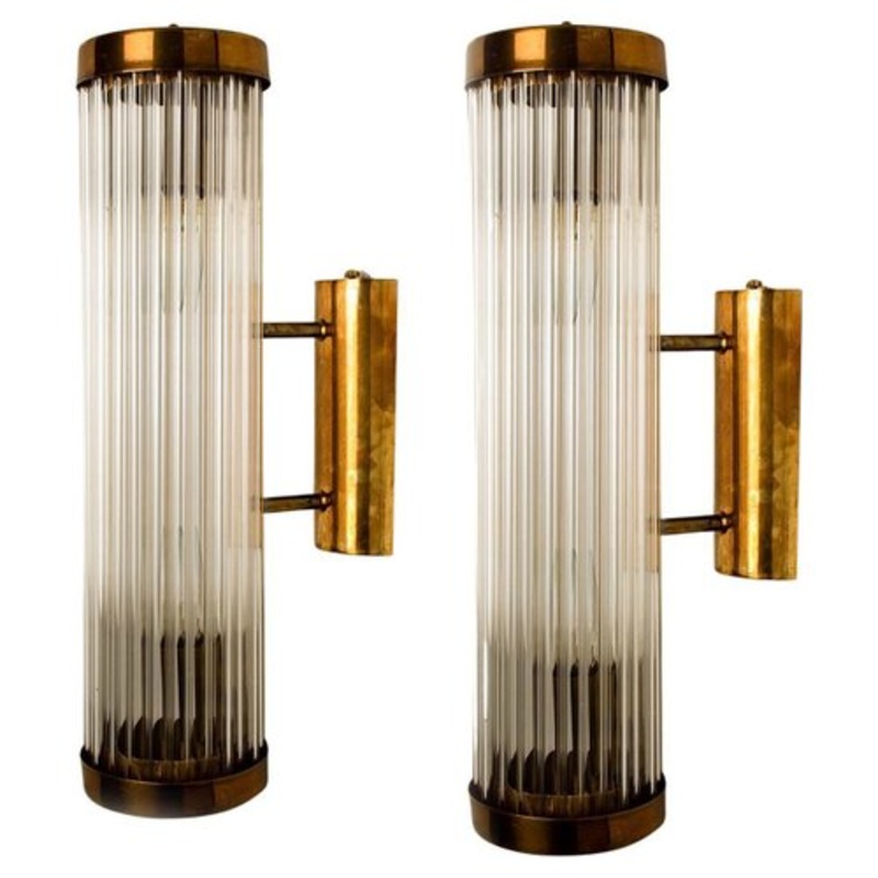 A stunning Art Deco Machine Age skyscraper style sconce. With their clean modernist lines and beautiful attention to detail, these sconces would be a winning addition to any style of interior from classic Deco to contemporary. They have been newly rewired