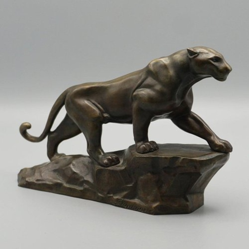 An Art Deco bronze sculpture of a striding panther by Arthur Dupagne. Set over a naturalist rocky base. Dimensions: H 14cm W 22cm D 6cm Origin: French Date: Circa 1925