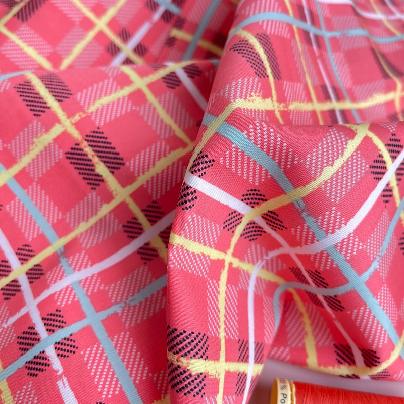 Electric Watermelon Plaid from CapsulesAn exceptional premium quality cotton with unparallel weave and thread count. The hand is incredibly soft and silky unlike any other quilting cotton or cotton poplin fabrics. It is also part of Art Gallery fabrics tim