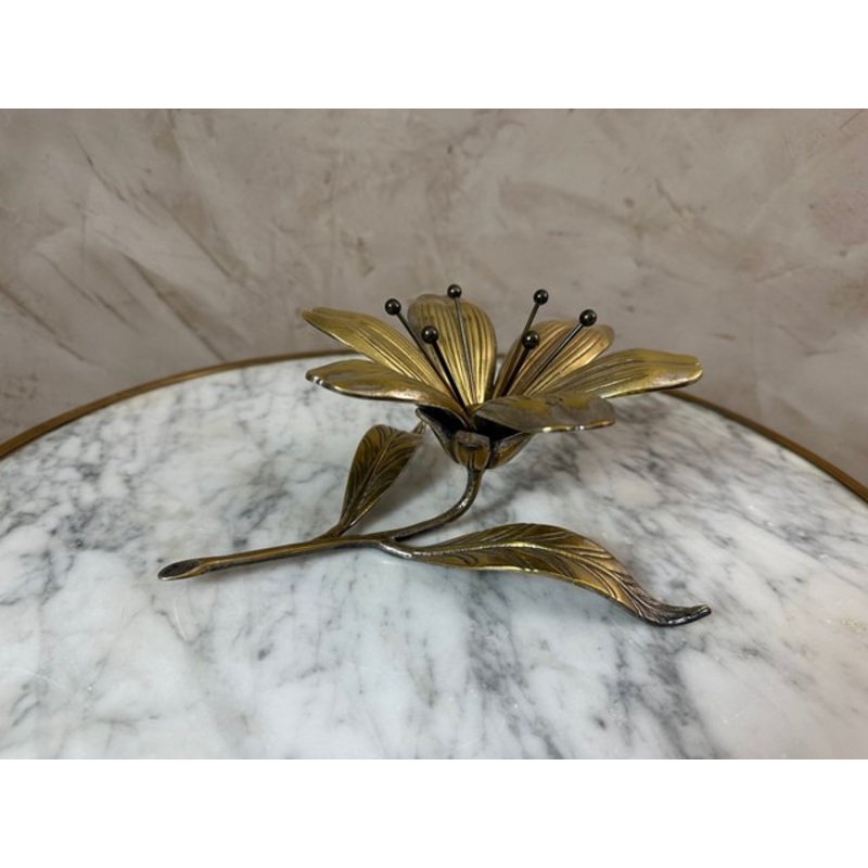 Brass ashtray in the shape of a flower dating from the 60s. Open or in bud, this pretty flower offers 6 removable petals which form small individual ashtrays.Decorative and practical object, the petals can be positioned open or closed.The pistils are also