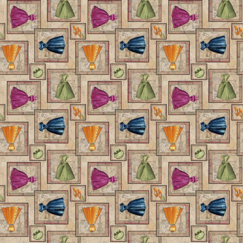 Atelier Dresses Bags And Shoes In Blocks in Tan by Elizabeth Medley for Blank Quilting Fabrics BQ-2590-35This cotton print fabric is perfect for quilting, crafts, apparel and home dcor accents.Material: 100% cotton quilting fabricWidth: 44 InchesCare: Mach