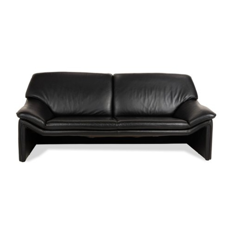The Laauser Atlanta two-seater sofa looks discreet, but elegant and stylish thanks to the black leather. It also ensures comfort and durability. Manufacturer Laauser Design Period From 2000 Production Period 20th Century Identifying Marks This piece has be