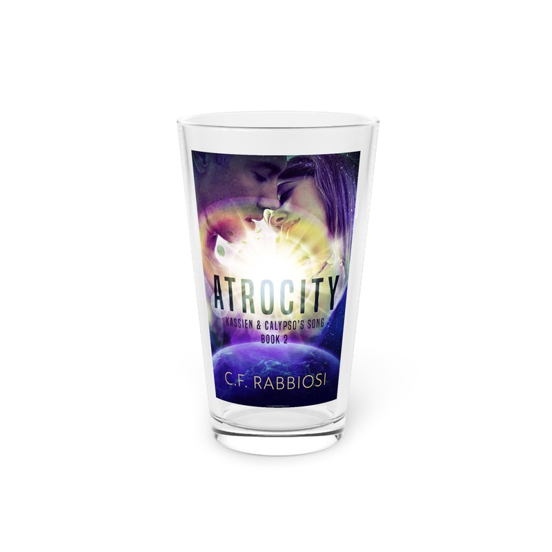 Nothing can replace a pint glass except for another pint glass. These long and transparent glasses are highly versatile, can make for a great housewarming gift, and are bound to be used in any household. The cover art on this pint glass is from C.F. Rabbiosi’s book, Atrocity.