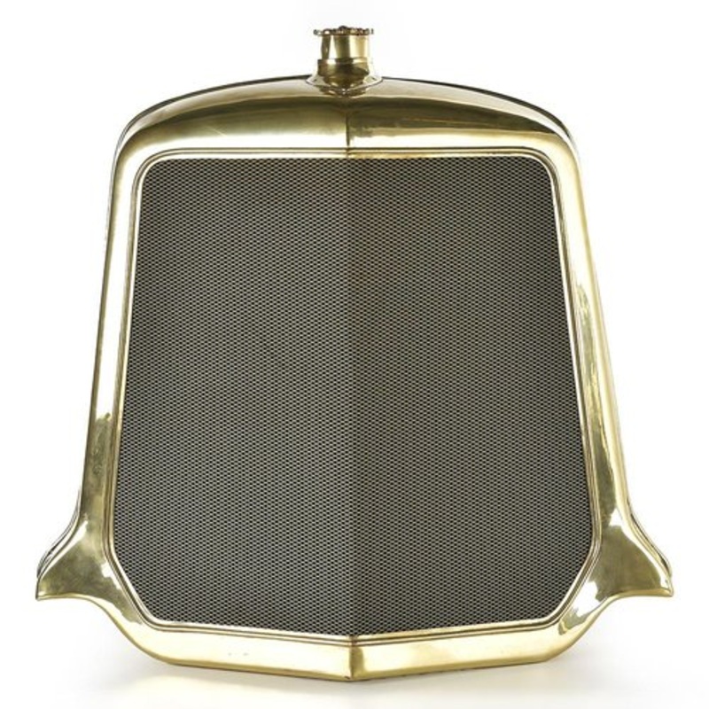 This old automobile radiator has been given a second life thanks to careful restoration and polishing which highlights the shine of the brass. Transformed into a wall light, it now constitutes an atypical decorative piece, ideal for lovers of old mechanics and retro-industrial decoration. Its generous dimensions (78 cm high, 81 cm wide and 24 cm deep) make it an imposing element, ready to become the focal point of your interior design. Main characteristics Origin and material: – Brass automobile radiator, probably from a Renault KZ model (1920s-1930s), recognizable by its slightly trapezoidal shape and its domed grille. – The polished brass gives an elegant shine to the whole, while emphasizing the vintage character of the piece. Transformation into a light fixture: – The old grille has been converted into a wall lamp, offering subdued lighting when turned on. – The original metal mesh lets light pass through subtly, creating a play of shadows on the surrounding wall. Design: – The retro-industrial style is fully expressed in this piece: we find the know-how of period mechanics, associated with an artistic dimension thanks to its new decorative function. – The rounded shapes of the radiator evoke the shell of old cars, while the upper part is topped with a cap typical of radiators of yesteryear. Dimensions: 78 cm (height) – 81 cm (width) – 24 cm (depth) Its imposing proportions make it a real object-sculpture, suitable for adorning a large wall or an exhibition space. A wall light with timeless charm Collector’s item: Whether you are passionate about automobile mechanics or old decoration, this radiator-lamp will seduce with its unique side and its revisited history. Interior decoration: Installed in a living room, an office or even an industrial-style loft, it will inevitably attract attention and arouse curiosity. It can also be highlighted in a showroom or a themed bar. Flea market & upcycled atmosphere: Its patina and authentic design recall the spirit of flea markets and antique objects, while integrating perfectly into an eclectic or vintage decor. This old car radiator reinvented as a wall light is much more than a simple accessory: it is a nod to the history of the automobile, a piece of character that combines aesthetics and functionality. It thus offers an enlightening solution for all those looking for a decorative object that is as original as it is refined.