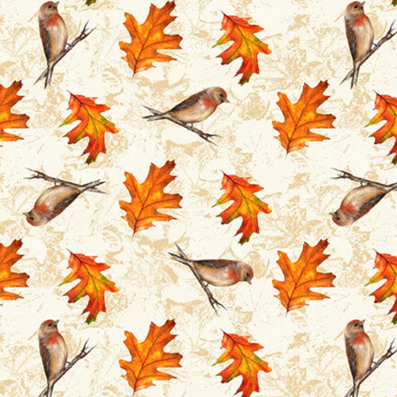 Autumn Splendor Tossed Leaves and Birds in Cream by Robert Giordano for Henry Glass HG 269-44