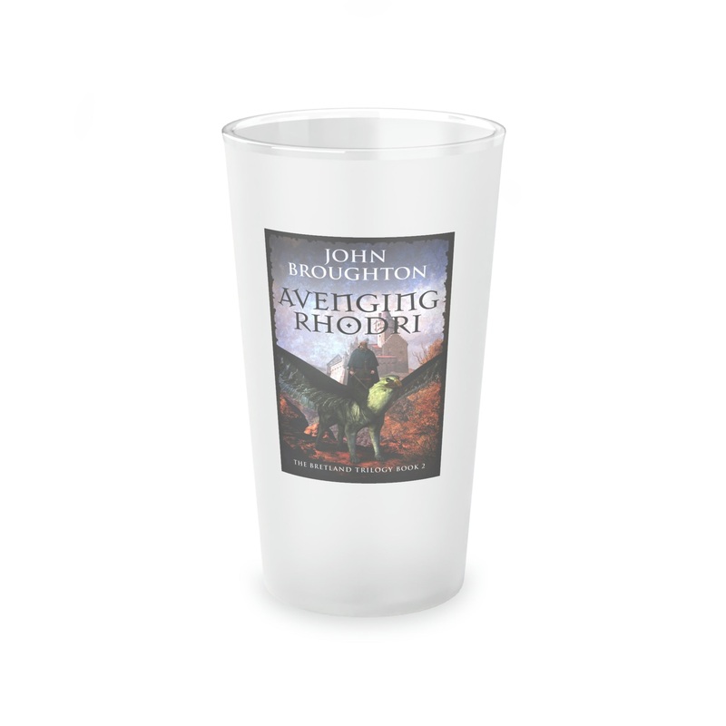 This frosted matte finish pint glass is versatile and dishwasher-safe. The cover art in this pint glass is from John Broughton's book, Avenging Rhodri.