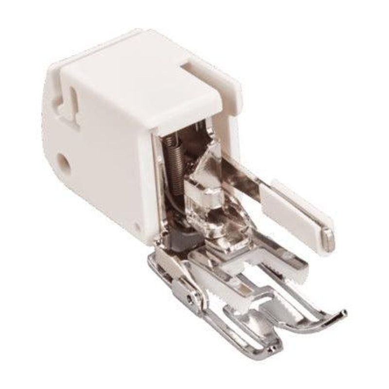 Difficult-to-work-with fabrics are best sewn usinga walking foot. It supports the fabric feedwith a second feed dog on the upper side of thefabric. The sewing project is moved simultaneously by the two feed dogsto alloweasierfabric feed and smothersewing process.