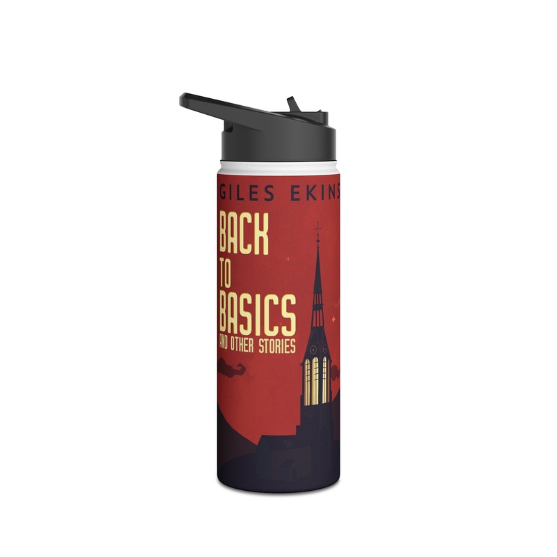 Quench your thirst in style with this 18oz stainless steel water bottle featuring a double-wall stainless steel build that keeps your drinks frosty for 24h and soothingly hot for 12h. This BPA-free, steel water bottle comes with a twist-on lid for easy sipping, making it excellent for daily use at work, at college, in the car, and beyond. The cover art in this water bottle is from Giles Ekins’s book, Back To Basics And Other Stories.