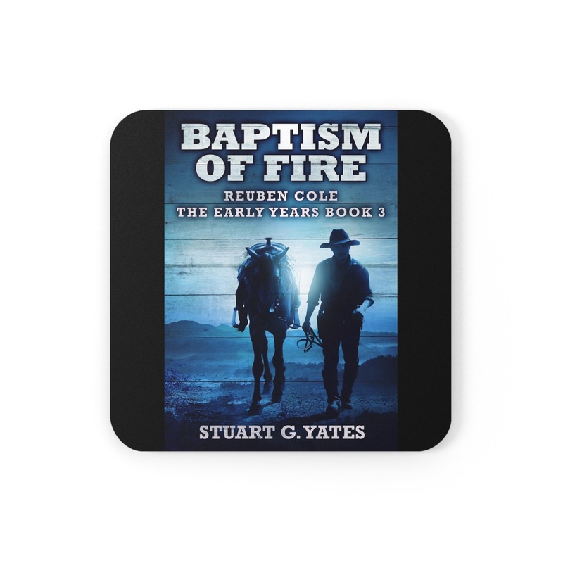 These coasters are made with a high-gloss top and feature a cork back to prevent sliding, and each order comes with a set of four coasters. The cover art in these coasters is from Stuart G. Yates's book, Baptism Of Fire.