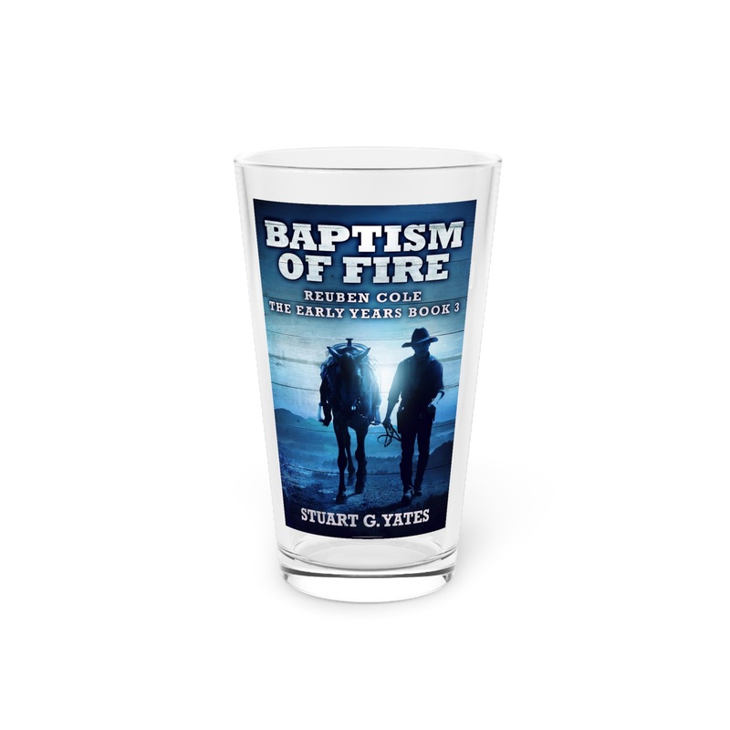 Nothing can replace a pint glass except for another pint glass. These long and transparent glasses are highly versatile, can make for a great housewarming gift, and are bound to be used in any household. The cover art on this pint glass is from Stuart G. Yates’s book, Baptism Of Fire.