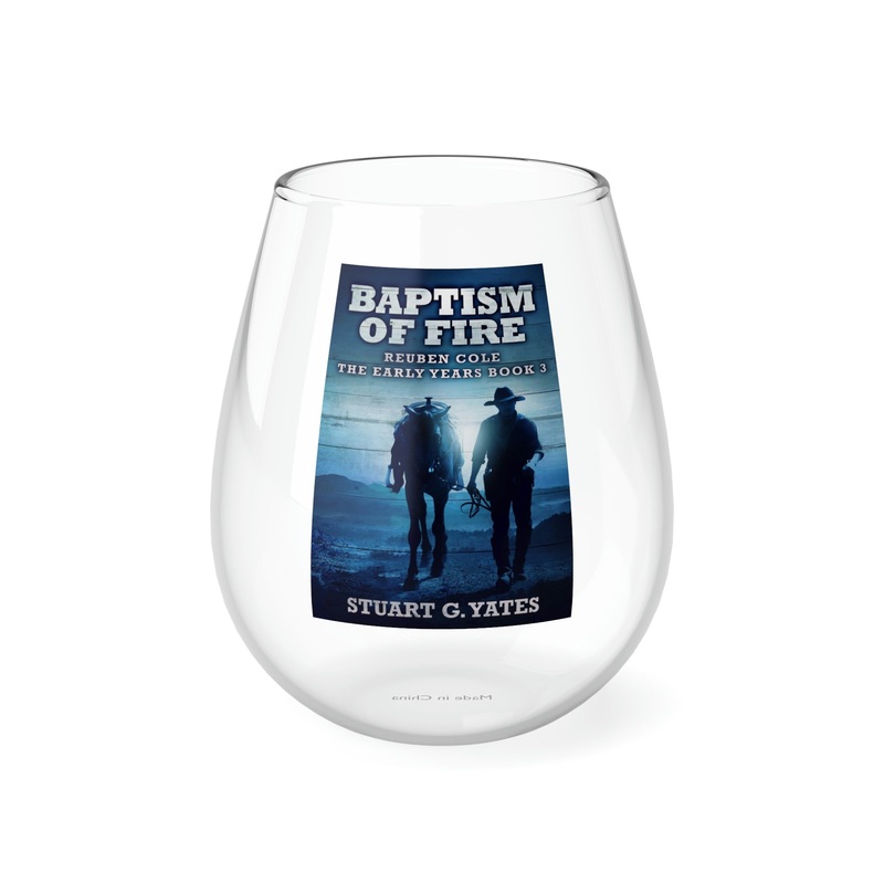 Whether it’s weddings, parties, or beautiful evenings with friends and family, this stemless glass wine fits right in. With its sleek design, each glass holds 11.75oz of your favorite wine. The cover art in this wine glass is from Stuart G. Yates’s book, Baptism Of Fire.