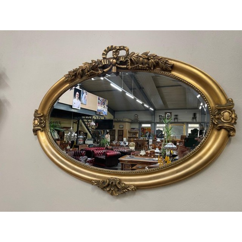 Pretty petite wall mirror decorative mirror dimensions: height x width x depth 102 x 72 An oval floral wall mirror which was made in the Baroque style. The frame of this mirror is made of artificial stone. The mirror is sanded. This piece is in very good c
