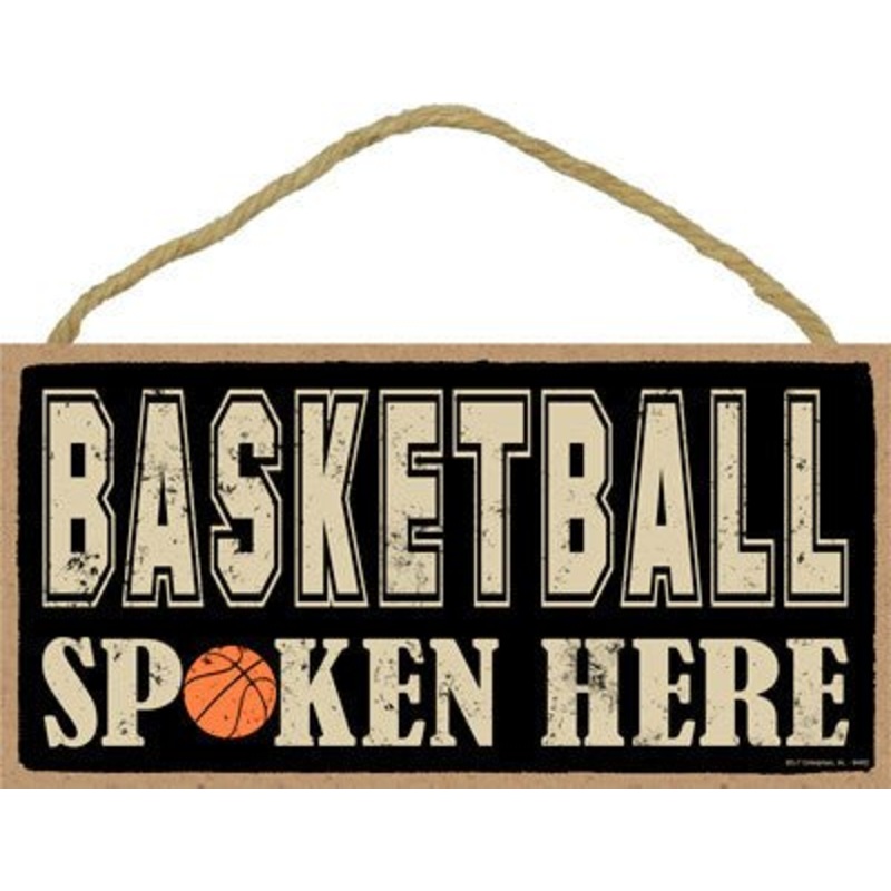 A 5″x 10″ primitive looking wooden sign reading “Basketball Spoken Here.” Perfect for basketball lovers! Sign is made of mdf with printed adhesive sticker.