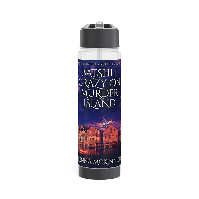 Add flavor and personality to your water with this infuser bottle. Twist the base off to access the infuser and add fruits, tea leaves, or anything you desire to enhance the flavor of your water. On the top, you’ll find a twist-on lid with a flip-top drinking sprout for a seamless drinking experience. This infuser is excellent for using at home, during outdoor excursions, or at the gym as a sports bottle. The cover art in this infuser water bottle is from Kenna McKinnon’s book, Batshit Crazy On Murder Island.