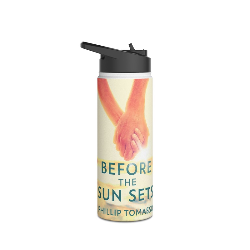 Quench your thirst in style with this 18oz stainless steel water bottle featuring a double-wall stainless steel build that keeps your drinks frosty for 24h and soothingly hot for 12h. This BPA-free, steel water bottle comes with a twist-on lid for easy sipping, making it excellent for daily use at work, at college, in the car, and beyond. The cover art in this water bottle is from Phillip Tomasso’s book, Before The Sun Sets.