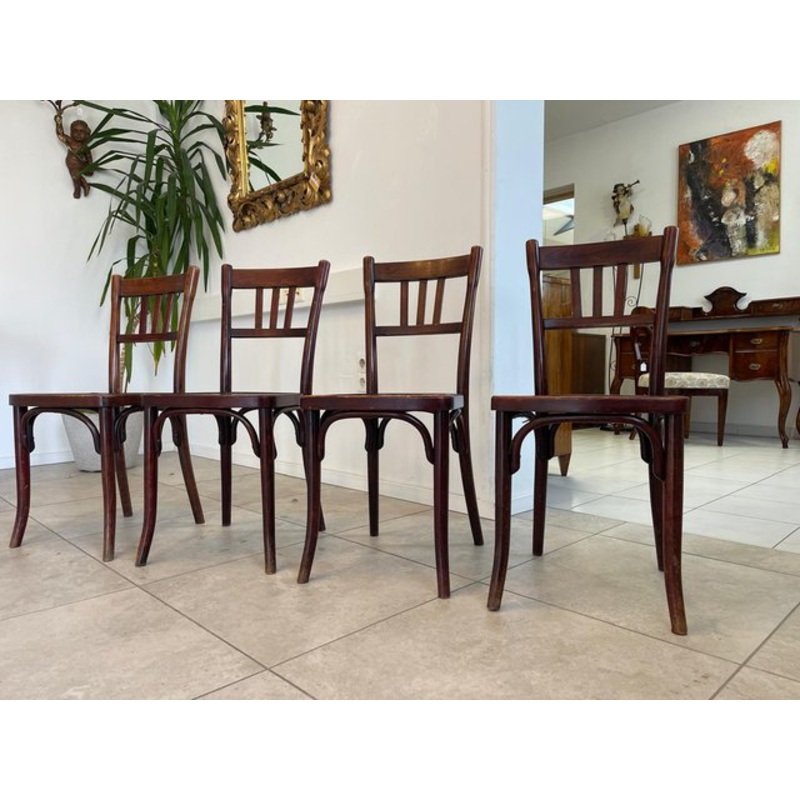 Set of 4 bentwood armchairs Vienna Mundus armchair Ensemble 1900 Dimensions: armchair height 88 x seat width 41 x depth 40 cm For sale is a pretty, sturdy set from the bentwood manufactory Mundus Vienna. There are 4 solid / stable armchairs which were manu