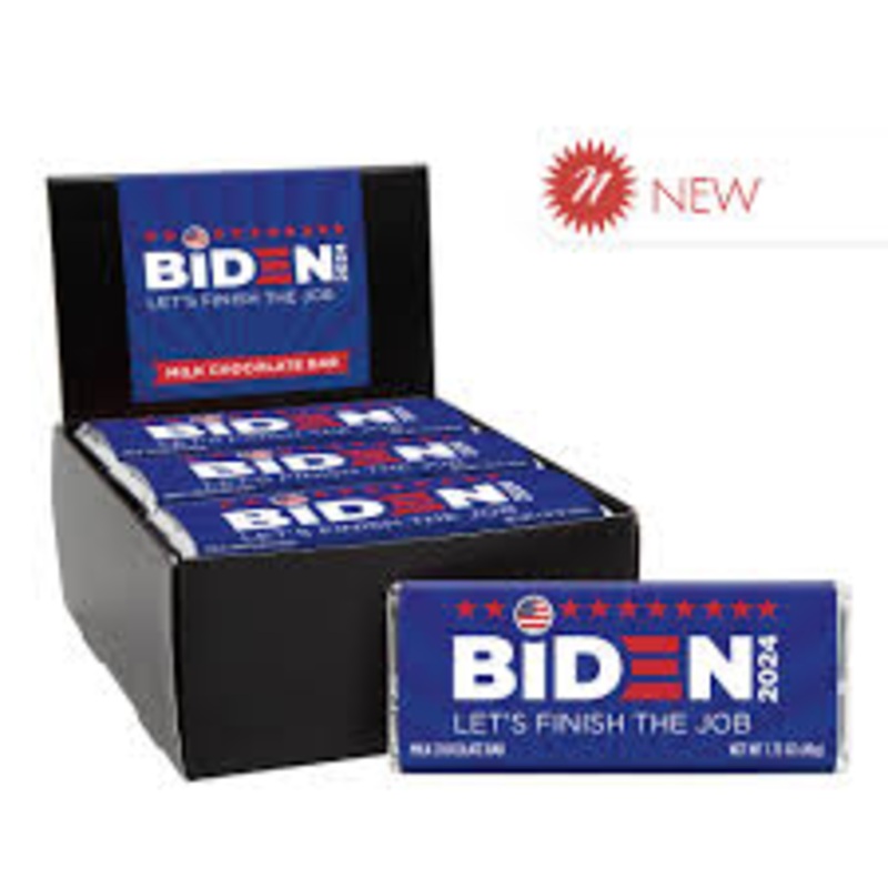 Get ready for a tasty political treat with our Biden 2024 Milk Chocolate Bar! This 1.75oz bar is sure to satisfy your sweet tooth and your love for our 46th president. With a delicious chocolatey taste and a patriotic wrapper, this candy bar is a must-have for any Biden supporter (or chocolate lover)!