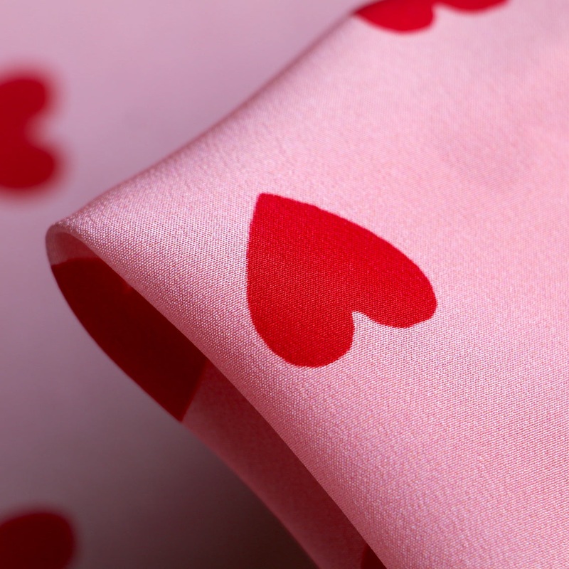 Italiandesignerpink/red heartsprinted 100% silk crepe de chine