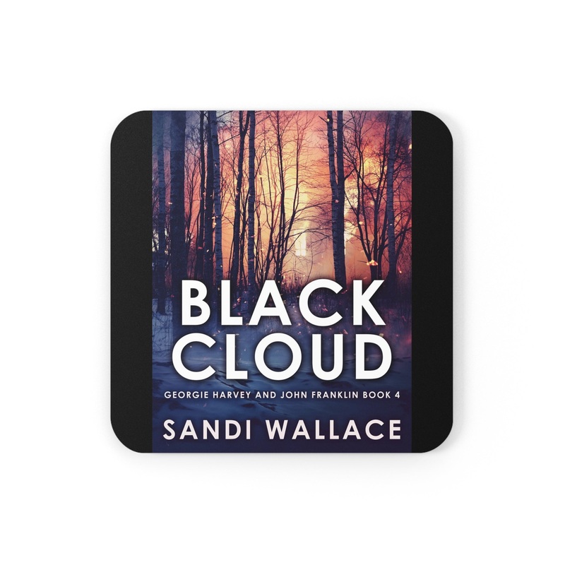 These coasters are made with a high-gloss top and feature a cork back to prevent sliding, and each order comes with a set of four coasters. The cover art in these coasters is from Sandi Wallace’s book, Black Cloud.