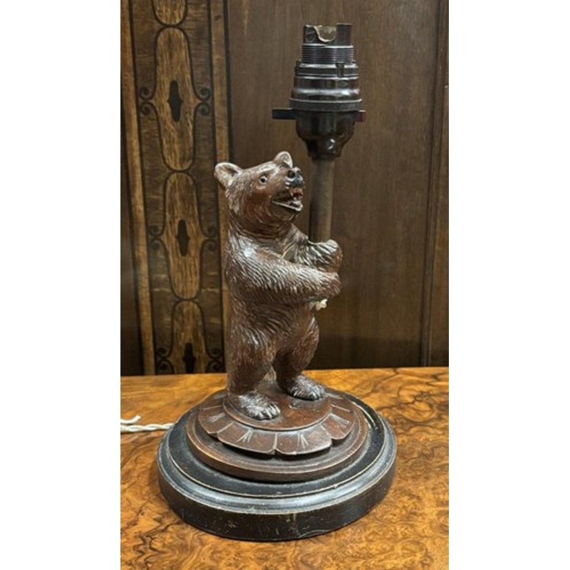 Black Forest Bear Lamp. Size 28 cms tall. Old wiring, needs to be re wired These area old items that will have signs of use and wear, see pics Production Period Unknown Style Vintage Detailed Condition Good This vintage/antique item may have some wear such