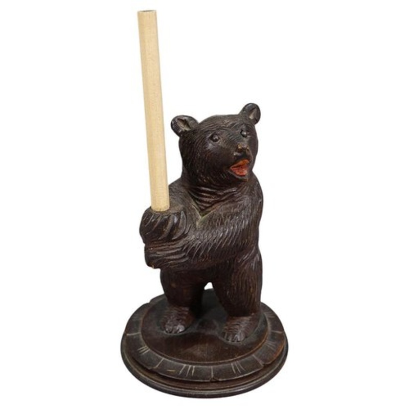 A finely carved Black Forest pen holder with a bear holdung the pencil. A great example of the art of woodworking in the Black Forest, Germany around the 1930s. The tradition of wood carving, using manual skills to make everyday objects and fine art sculpt