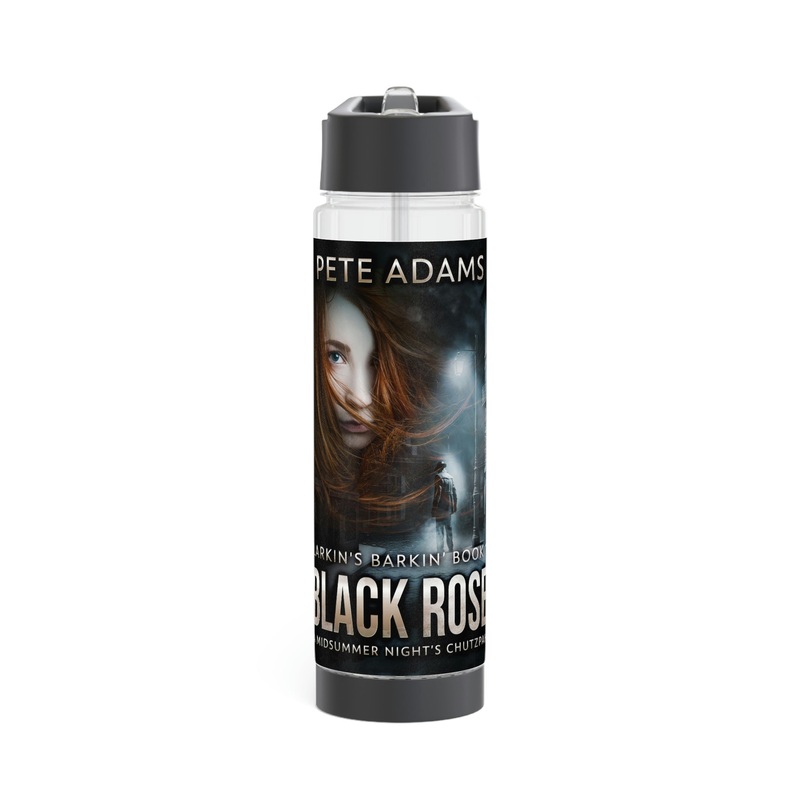 Add flavor and personality to your water with this infuser bottle. Twist the base off to access the infuser and add fruits, tea leaves, or anything you desire to enhance the flavor of your water. On the top, you’ll find a twist-on lid with a flip-top drinking sprout for a seamless drinking experience. This infuser is excellent for using at home, during outdoor excursions, or at the gym as a sports bottle. The cover art in this infuser water bottle is from Pete Adams’s book, Black Rose.