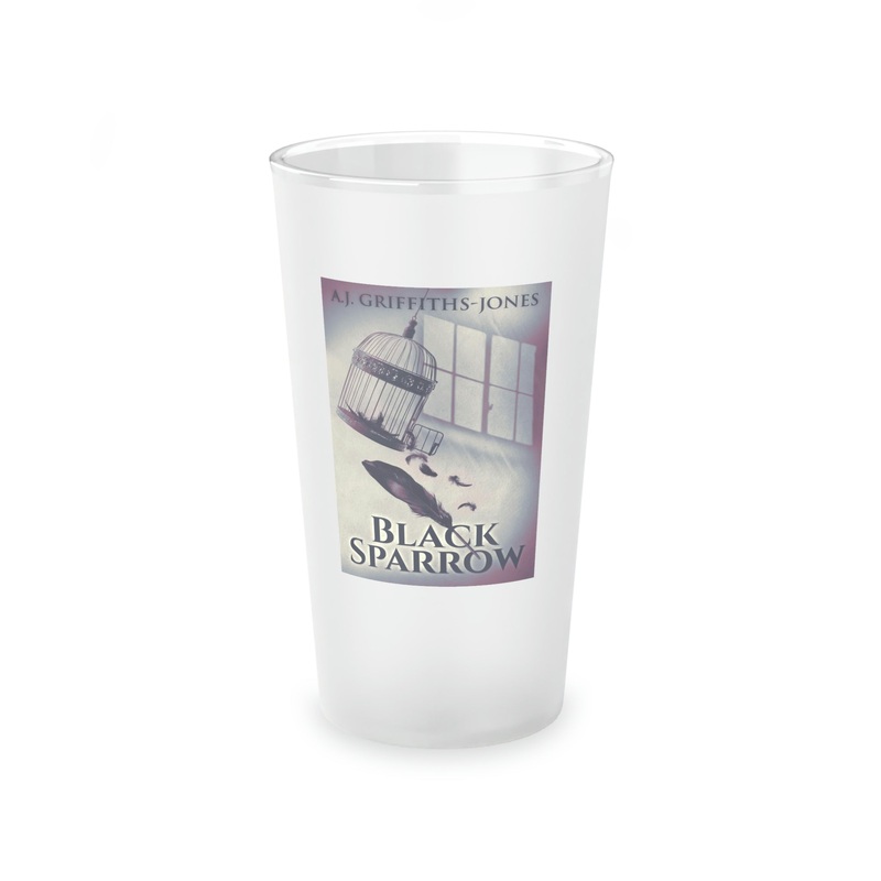 This frosted matte finish pint glass is versatile and dishwasher-safe. The cover art in this pint glass is from A.J. Griffiths-Jones's book, Black Sparrow.