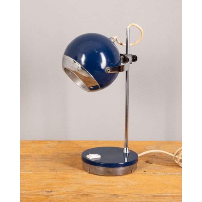 Table lamp in chromed and blue metal, "Eye ball" model, design by Goffredo Reggiani, 1970s. Creator Goffredo Reggiani Manufacturer Reggiani Design Period 1970 to 1979 Production Period Unknown, 1970 to 1979 Country of Manufacture Italy Identifying Marks Th