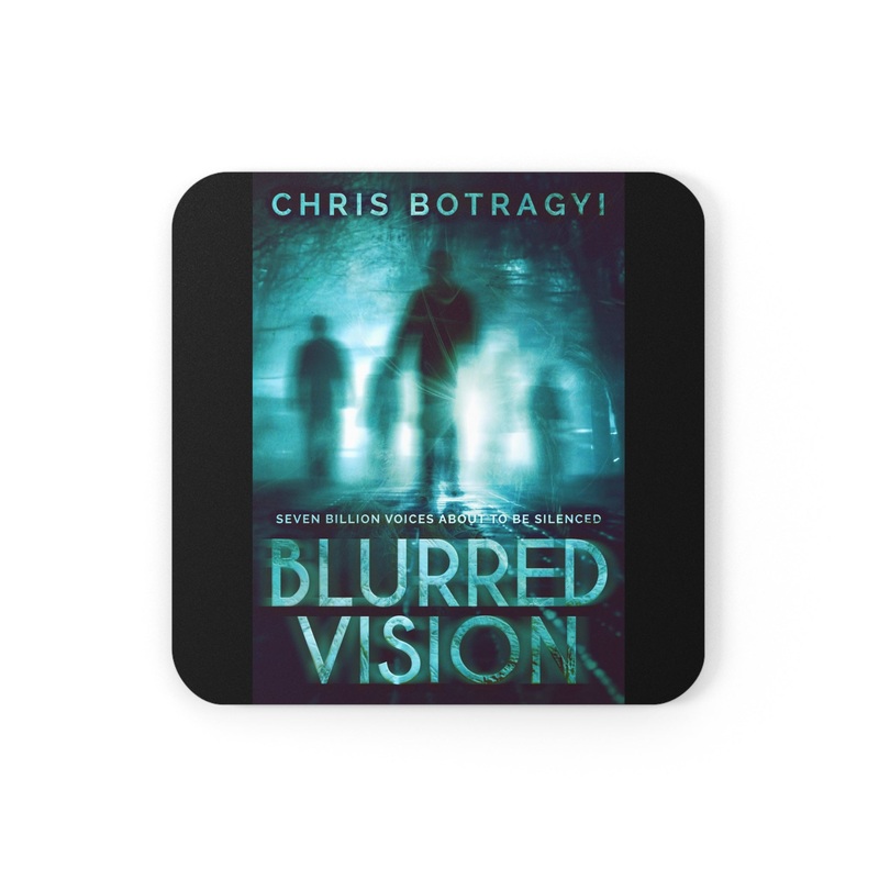 These coasters are made with a high-gloss top and feature a cork back to prevent sliding, and each order comes with a set of four coasters. The cover art in these coasters is from Chris Botragyi’s book, Blurred Vision.