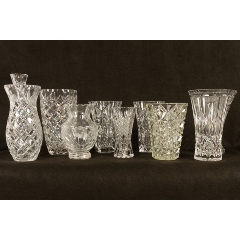 Antique Bohemian Lead Crystal Vases Set of 10.Set of ten different antique cut crystal vases, with different cut decorations. First half of 20th century. Height 15 - 26cm.With good weight, no damage, chips or cracks. Design Period 1920 to 1949 Year Product