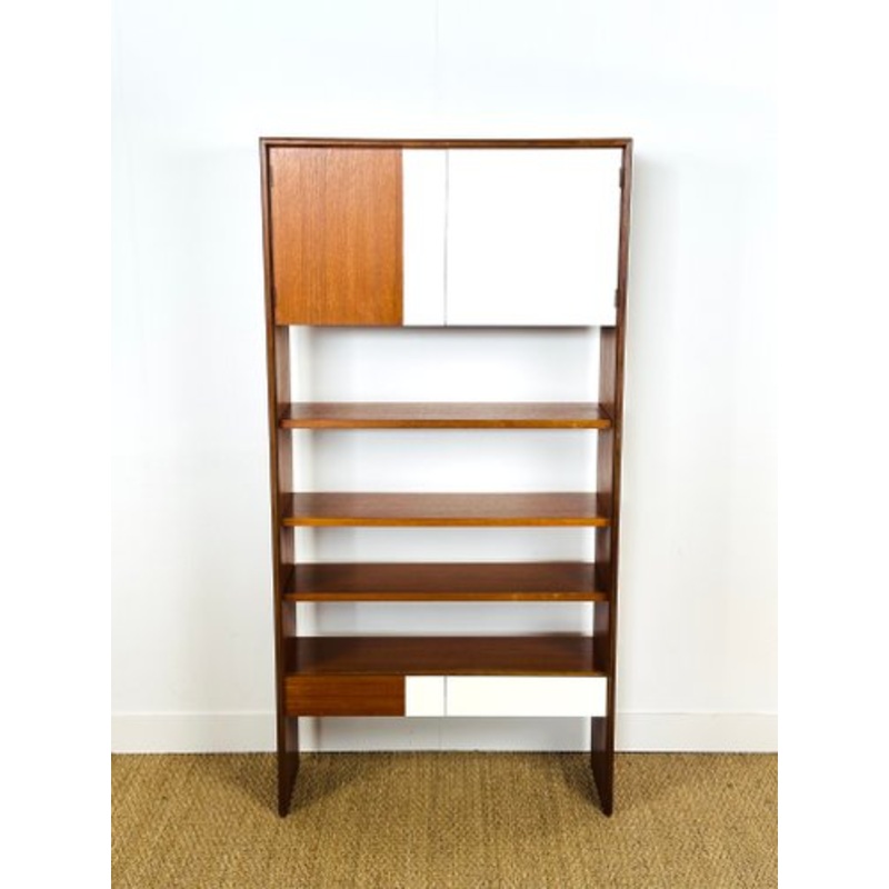 Vintage teak bookcase signed G-Plan. Composed of two storage doors and two drawers and 3 shelves. White paint. Nice storage space. Dimensions: H150 L76 D26.5 Manufacturer G-Plan Design Period 1960 to 1969 Production Period 1960 to 1969 Identifying Marks Th