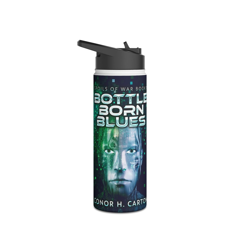 Quench your thirst in style with this 18oz stainless steel water bottle featuring a double-wall stainless steel build that keeps your drinks frosty for 24h and soothingly hot for 12h. This BPA-free, steel water bottle comes with a twist-on lid for easy sipping, making it excellent for daily use at work, at college, in the car, and beyond. The cover art in this water bottle is from Conor H. Carton’s book, Bottle Born Blues.