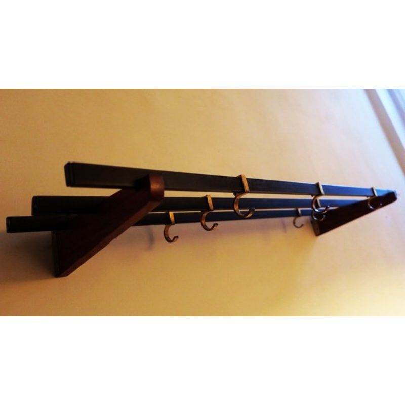 Teak, brass and black metal wall mounted coat and hat rack dating from the 1960s, with 7 adjustable sliding hooks. Design Period 1960 to 1969 Year Production Period Unknown Country of Manufacture Germany Style Vintage, Mid-Century Detailed Condition Very G