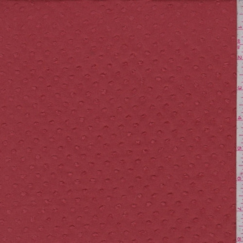 -Solid polyester and rayon knit with a tone on tone clip dot accent-80% Polyester 18% Rayon 2% Lycra-Width: 58"-Weight: Light-Transparency: Semi-sheer-Hand: Soft with a textured surface-Stretch: Slight across width-Drape: Good Drape-Luster: Matte-End Uses: