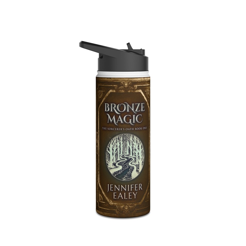 Quench your thirst in style with this 18oz stainless steel water bottle featuring a double-wall stainless steel build that keeps your drinks frosty for 24h and soothingly hot for 12h. This BPA-free, steel water bottle comes with a twist-on lid for easy sipping, making it excellent for daily use at work, at college, in the car, and beyond. The cover art in this water bottle is from Jennifer Ealey’s book, Bronze Magic.