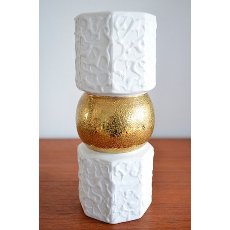 Porcelain bubble vase from the 1970s by Prozellan Mannfaktur Royal KPM - White porcelain with a matt surface with a gold-plated spherical shape in the middle- Marked with Royal Porcelain Bavaria KPM Germany handmade Manufacturer KPM Royal Design Period 197