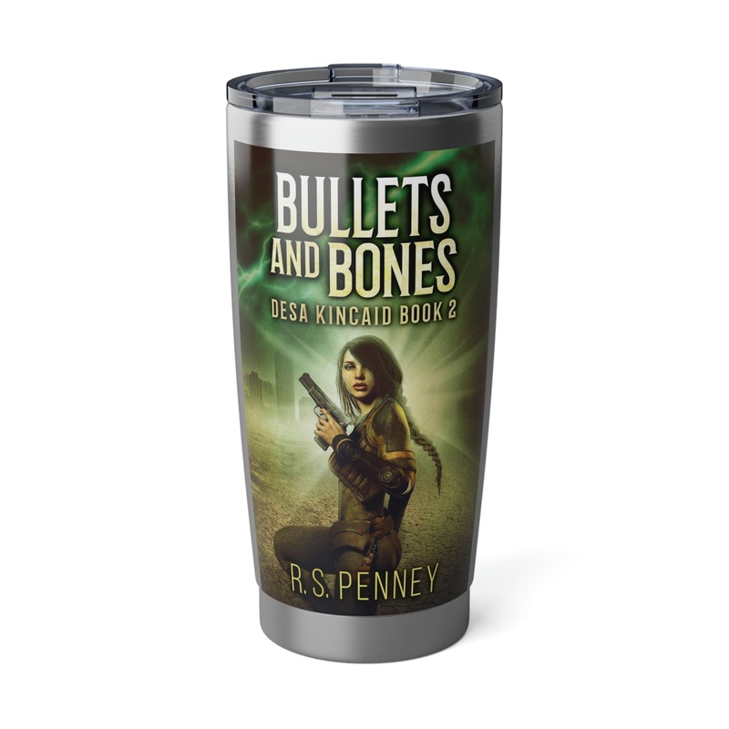 Minimize your plastic footprint with style. This tumbler fits perfectly into car cup holders, and the rubber gasket makes it spill-resistant on bumpier roads. The double-wall insulation makes sure drinks stay at the right temperature until the next pit stop. The cover art in this 20 oz tumbler is from R.S. Penney’s book, Bullets And Bones.