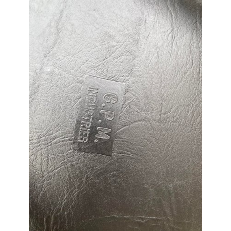 64 identical chairs available for saleBurgundy metal frame chairSeat and back covered in foam and gray fabricVery solid chair used in a restaurantStackable chairsSome scratches, worn pads, but overall in good used conditionHeight 86cmSeat height 46cmWidth