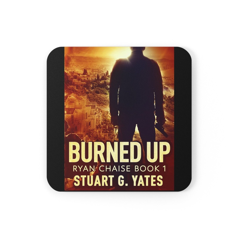 These coasters are made with a high-gloss top and feature a cork back to prevent sliding, and each order comes with a set of four coasters. The cover art in these coasters is from Stuart G. Yates's book, Burned Up.